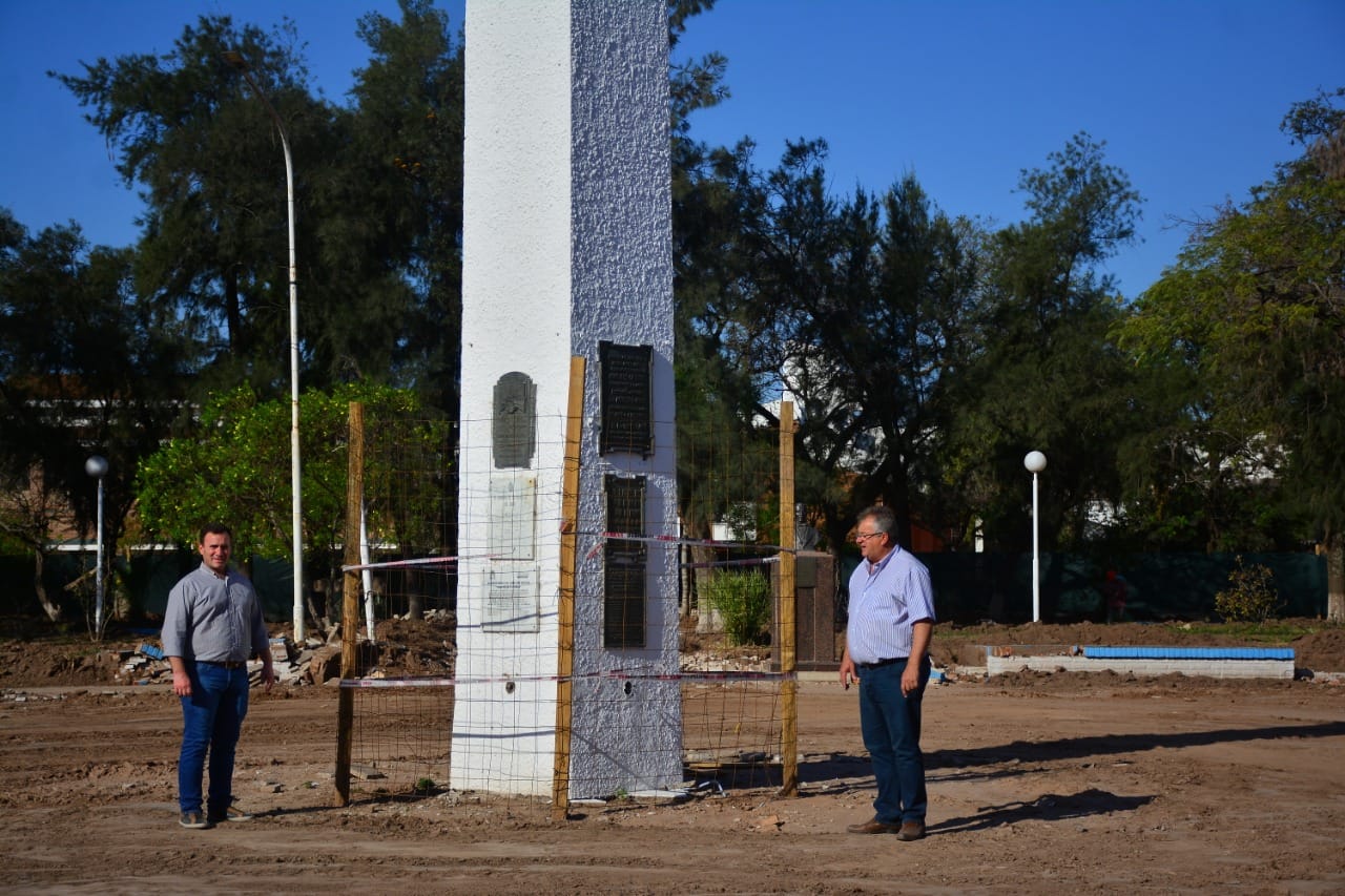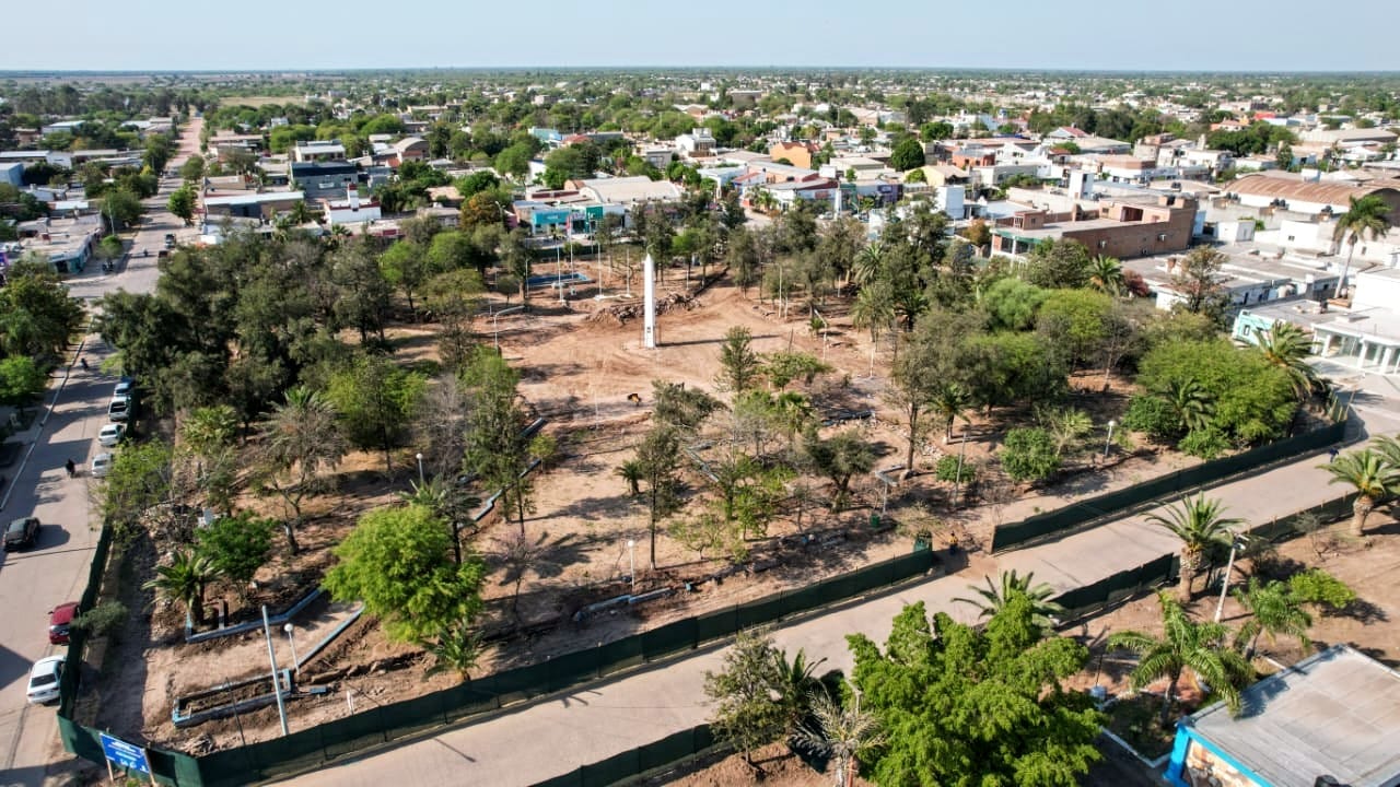 Avanzan los trabajos de remodelación de la plaza central de Castelli