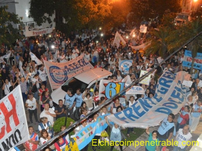 El lunes la medida de fuerza se cumplió en coincidencia con la fecha fijada para el inicio de nivel inicial y de primer año del nivel secundario, con manifestaciones en distintas localidades y concurridas marchas de antorchas multitudinarias. En Resistencia, la convocatoria recorrió más de siete cuadras colmadas de docentes y encabezada por el Frente Gremial, por “sueldos dignos”. Algo similar ocurrió en Sáenz Peña, donde la marcha culminó en la plaza central con un fogón que tuvo la participación de grupos folklóricos de la ciudad termal en apoyo a la lucha docente.