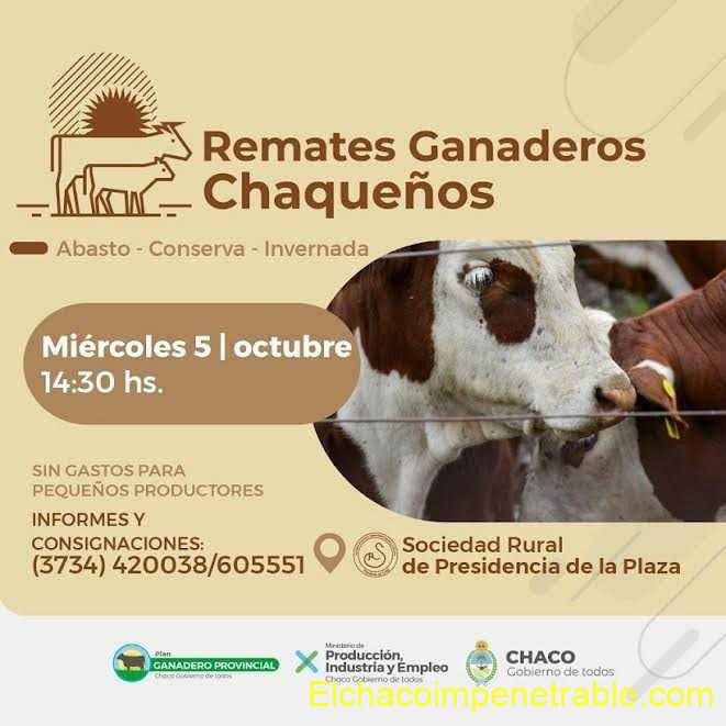 El evento, que se realizará el próximo 5 de octubre en Presidencia de la Plaza, con salida a pista de animales con destino para abasto, conserva e invernada, será el duodécimo del año.