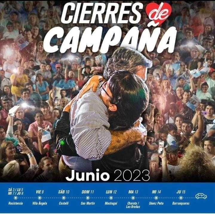 El espacio político liderado por el gobernador Jorge Capitanich y la vicegobernadora Analía Rach Quiroga definió el cronograma de actos de cierre de campaña de cara a las elecciones primarias, abiertas, simultáneas y obligatorias del 18 de junio. Serán 12 en total, arrancando en Resistencia y con el cierre –como es habitual- en Barranqueras.