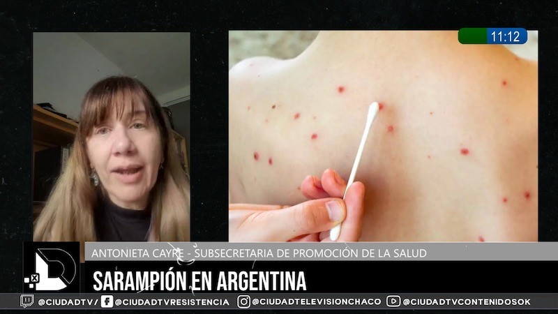 Antonieta Cayré, subsecretaria de Promoción de la Salud del Chaco, se refirió al brote de sarampión que afecta al país y recordó que, aunque la mayoría de los casos están concentrados en el Área Metropolitana de Buenos Aires (AMBA), también se confirmó un caso en la provincia de San Luis. “Si bien hay 22 casos notificados y confirmados en el país, la mayoría concentrado en Ciudad Autónoma Buenos Aires y provincia Buenos Aires, se confirmó también un caso en la provincia de San Luis”, explicó en declaraciones a CIUDAD TV.