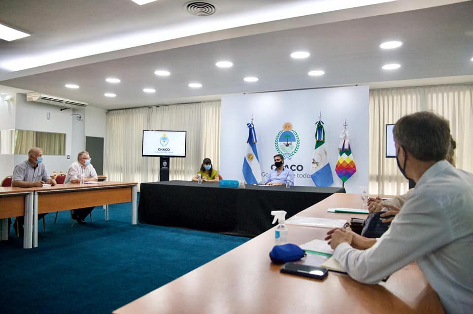 El gobernador Jorge Capitanich, la Vicegobernadora Analia Rach Quiroga y los intendentes de Castelli Pío Sander, Miraflores Jorge Frank y El Espinillo Zenón Cuellar, además de representantes de Extensión UNNE se reunieron para evaluar la presentación de la Tecnicatura Universitaria en Apicultura en Castelli.