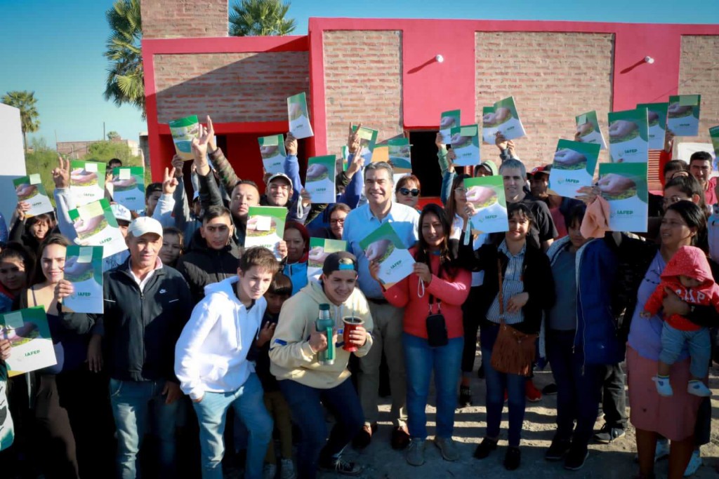 “Hoy es un día de mucha alegría porque 46 familias chaqueñas van a vivir más dignamente”, dijo el gobernador al entregar las viviendas. Las unidades habitacionales fueron construidas por el Instituto de Agricultura Familiar y Economía Popular (IAFEP), con organizaciones sociales, fundaciones y cooperativas. “Logramos el cumplimiento de dos derechos de forma simultánea, el derecho al trabajo digno y a la vivienda digna”, expresó