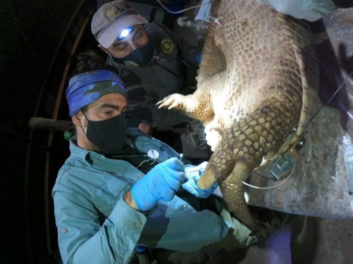 Durante la noche del miércoles en el Parque Nacional El Impenetrable, en la provincia del Chaco, se logró por primera vez en un área protegida nacional la captura de un ejemplar de tatú carreta (Priodontes maximus) para la instalación de un dispositivo de seguimiento satelital que permitirá profundizar el estudio sobre esta especie a través de su monitoreo en la región chaqueña.