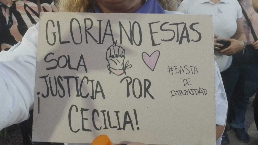 Varios manifestantes portaban carteles con las insignias "no estamos todas, falta Cecilia", "los culpables que reciban todo el castigo de la justicia divina", "marcho hoy para que mañana no marchen por mí", "no queremos otra Ceci" y "justicia por Cecilia", acompañadas con banderas argentina y de “Ni Una Menos”.