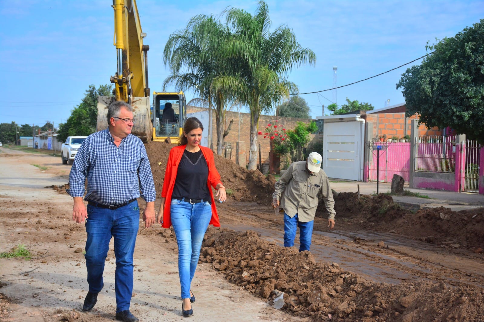 En la jornada de este jueves 6 de julio, el intendente Pio Sander junto a la presidenta del Concejo Deliberante Soledad Rach recorrieron obras de pavimento urbano que se encuentran en ejecución.
