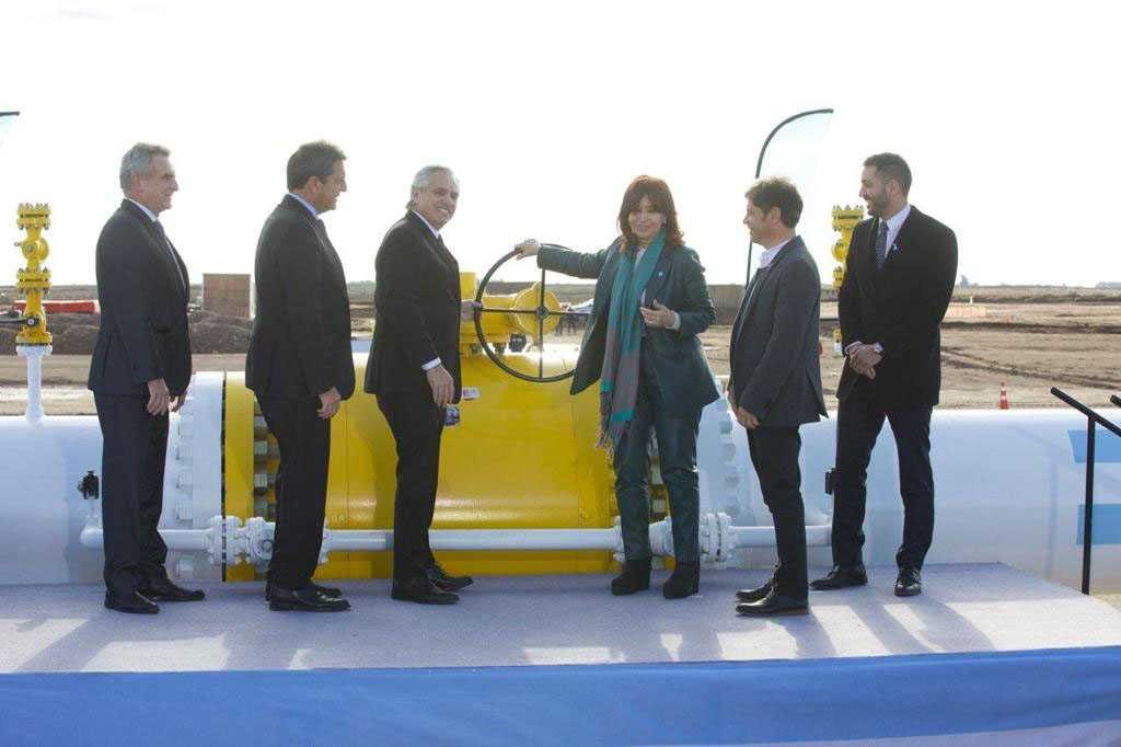 De la apertura de la válvula, participaron el presidente, Alberto Fernández; la vicepresidenta, Cristina Fernández; y el ministro de Economía y precandidato presidencial, Sergio Massa. Destacaron la trascendencia de la obra para el cambio de la matriz económica porque permitirá a exportar gas a países limítrofes.