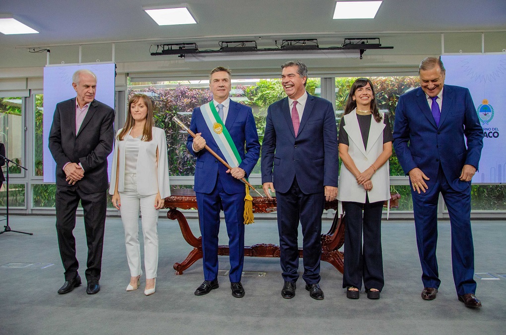 La ceremonia se completó con el acompañamiento de los ex gobernadores Ángel Rozas y Roy Nikisch, junto al gabinete entrante.