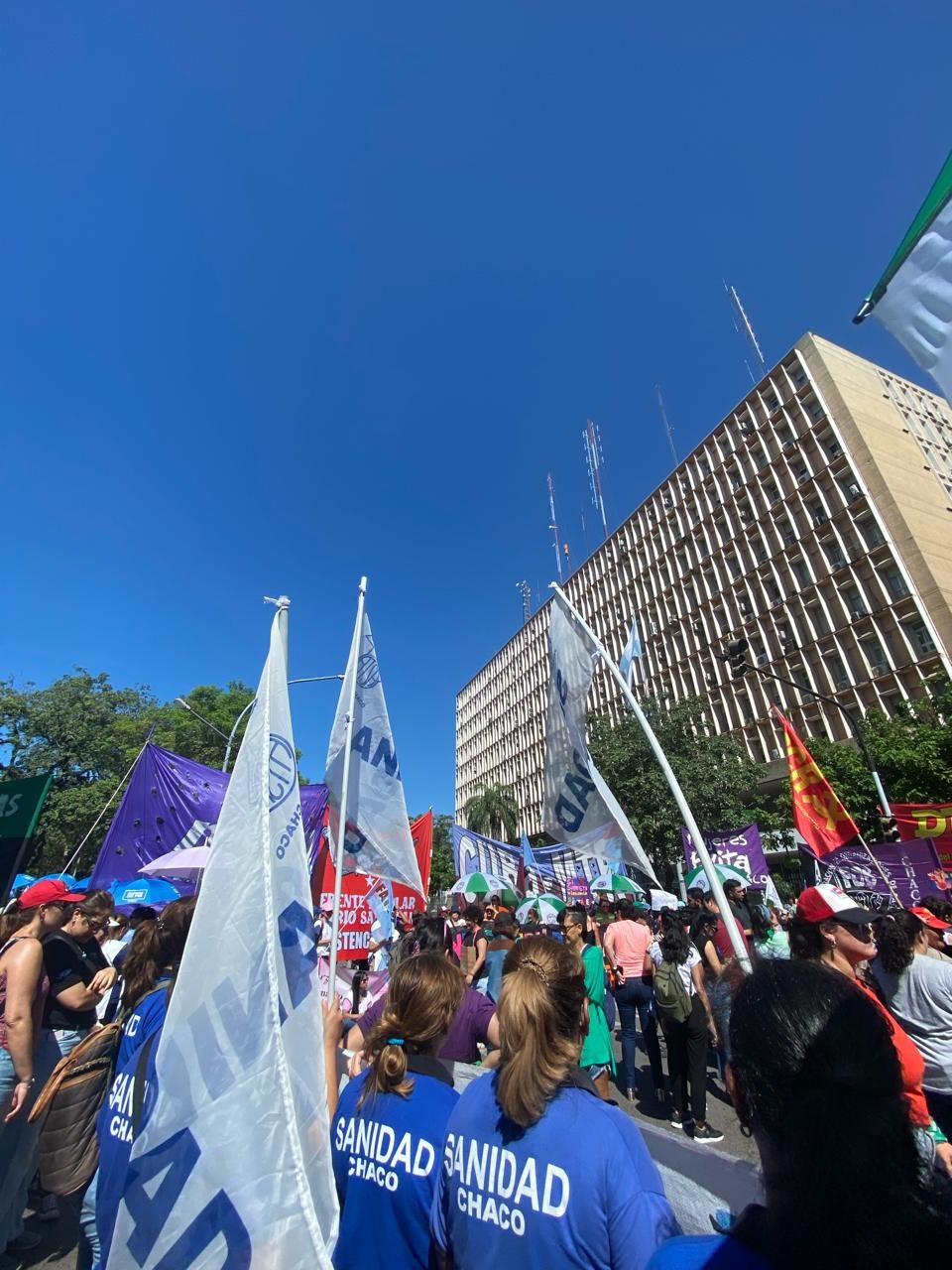"Hoy viernes, 08 de marzo, en unidad y organizadas, salimos a las calles del país, millones de mujeres, lesbianas, trans, travestís, no binaries; mujeres cuidadoras, educadoras, comerciantes, campesinas, originarias, de organizaciones sociales, sindicales, políticas, estudiantiles, ambientalistas y originarias, salimos todas, porque todas somos trabajadoras, en el marco del día Internacional de las Mujeres Trabajadoras y el paro transfeminista levantamos el grito colectivo desde el Chaco y la Argentina "Contra el ajuste, la entrega y la represión de Milei, porque el hambre también es violencia".