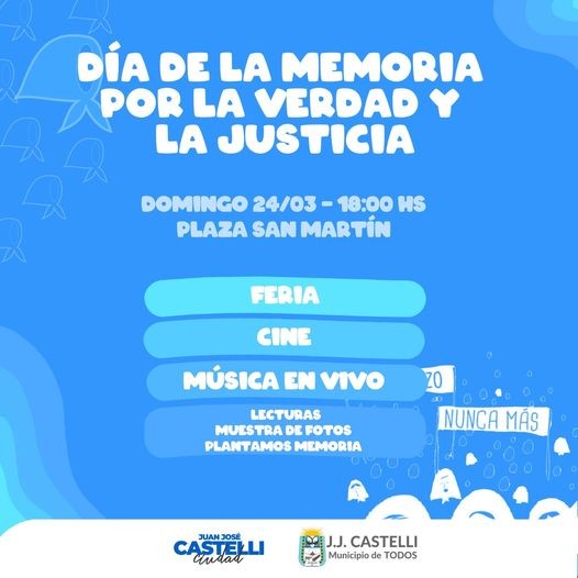 Por tal motivo desde la Municipalidad Juan José Castelli a través de las distintas secretarias y subsecretarias, llevarán adelante numerosas actividades destinadas a la reflexión y el debates sobre esta fecha, con lecturas, muestra fotográfica, cine, Feria, Música en vivo además se plantará un árbol bajo la consigna “A 48 años del Golpe, plantamos memoria”.