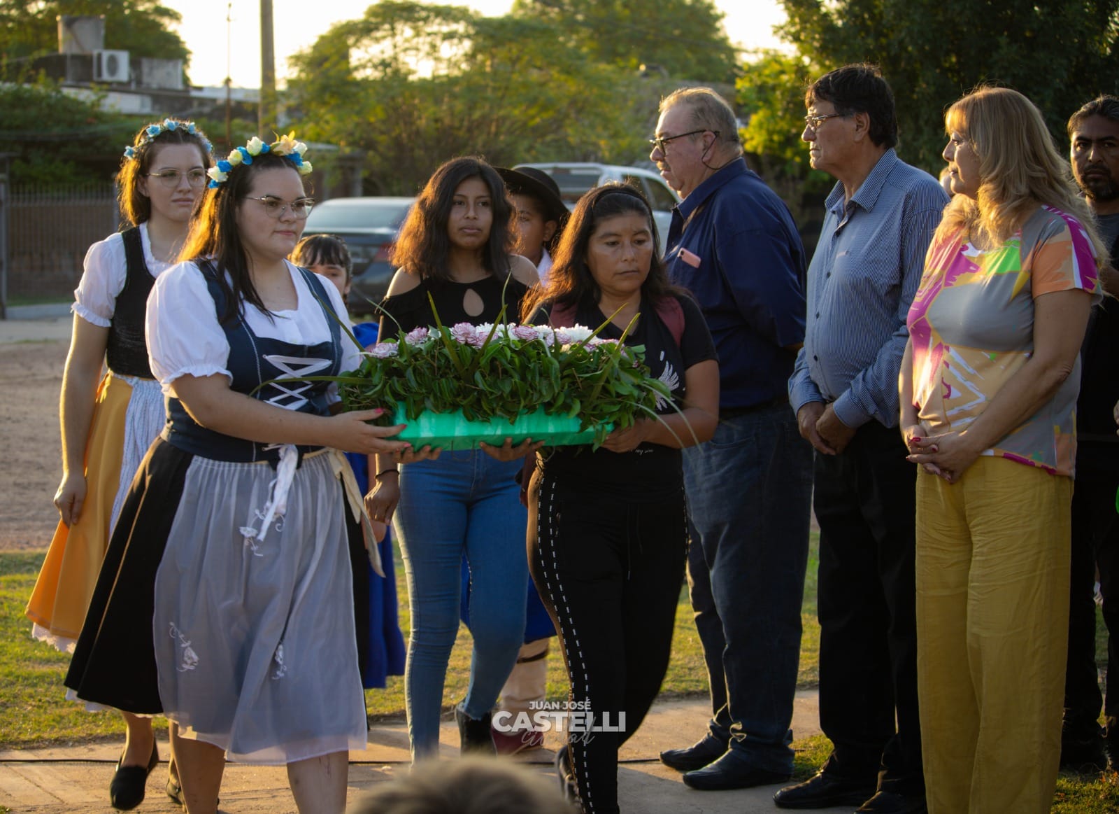 Luego, se realizó una ofrenda floral en el mural en homenaje al soldado argentino, llevada por representantes, de importante crisol de razas de nuestra región los alemanes del Volga, los criollos representados por la academia de danzas Esperanza Chaqueña, y los pueblos originarios, simbolizando la diversidad y participación de toda la comunidad en este acto de memoria.