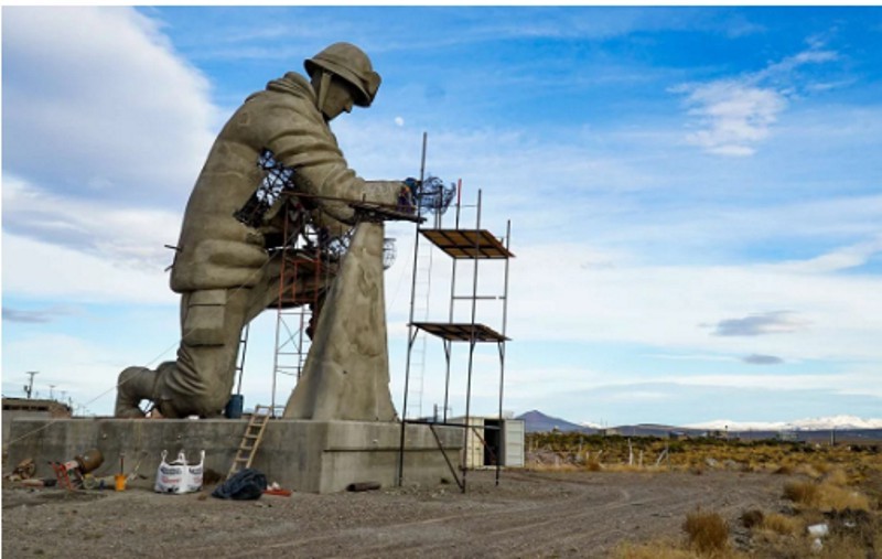 Se está por inaugurar en la Patagonia el monumento más grande que jamás haya existido en homenaje a los soldados argentinos que combatieron en la Guerra de Malvinas: la estructura, que pesa aproximadamente 20 toneladas, tiene 15 metros de altura y si se le suma el pedestal llega a los 17 metros.
