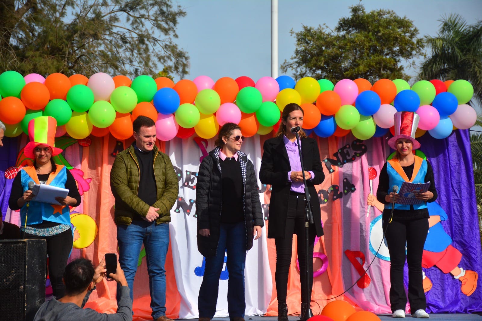 La presidenta del Concejo Deliberante, Soledad Rach, el secretario de Gobierno, Ismael Pablo Barnes, el secretario de Cultura y Turismo, Rubén Romero, y la directora regional, Cecilia Lemoine, estuvieron presentes para celebrar junto a los niños y sus familias. Rach elogió a las jardineras organizadoras por el espectáculo y transmitió los saludos del intendente Pio Sander, quien no pudo asistir.