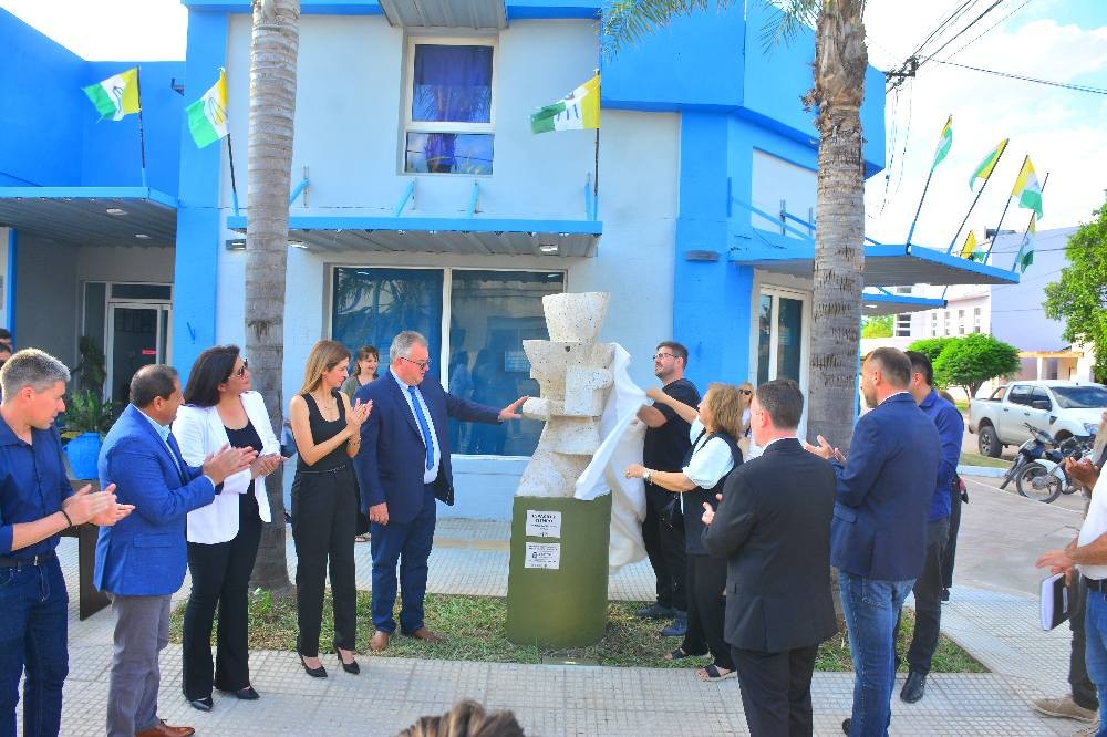 En el marco de las celebraciones por el Día del Pueblo 🎉, la Asociación Amigos del Arte 🎨 junto a la Municipalidad de Juan José Castelli 🏛️ celebraron el emplazamiento de la escultura número 27: “Espacio y Tiempo” ⏳, del artista Jhon Gogaberishvili, oriundo de Georgia 🇬🇪, realizada en la Bienal del 2022. El acto se desarrolló en la sede municipal 📍 (calle Sarmiento 99), donde el intendente Pío Sander 👤 firmó el acta de donación de esta valiosa obra, que pasa a formar parte del patrimonio cultural de la ciudad 🌟. La ceremonia contó con la participación de la presidenta del Concejo Deliberante, Soledad Rach 👩‍💼, el secretario de Gobierno Ismael Pablo Barnes 📑, e intendentes invitados como Gustavo Karasiuk 🤝. La obra, un reloj de arena ⏳ con incrustaciones geométricas 🔷, representa la continuidad del paso del tiempo 🕰️, donde lo inestable y lo sensible se entrelazan en un equilibrio sutil ⚖️, invitando a reflexionar sobre la vida 🌱 y la memoria colectiva 🕊️. El presidente de la Asociación Amigos del Arte resaltó la importancia de emplazar esta escultura en un lugar tan emblemático como la Municipalidad 🏛️, símbolo de encuentro y pertenencia para todos los castellenses 💙. ✨ “Recibir este regalo nos llena de orgullo, porque estas obras no solo embellecen nuestra ciudad, sino que además consolidan el patrimonio artístico y cultural de Juan José Castelli”, expresó el intendente Pío Sander 👏. Acompañaron este acto concejales y funcionarios del gabinete municipal.