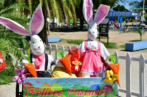 Con materiales reciclados, se realizó la ornamentación de la Plaza, para las Pascuas