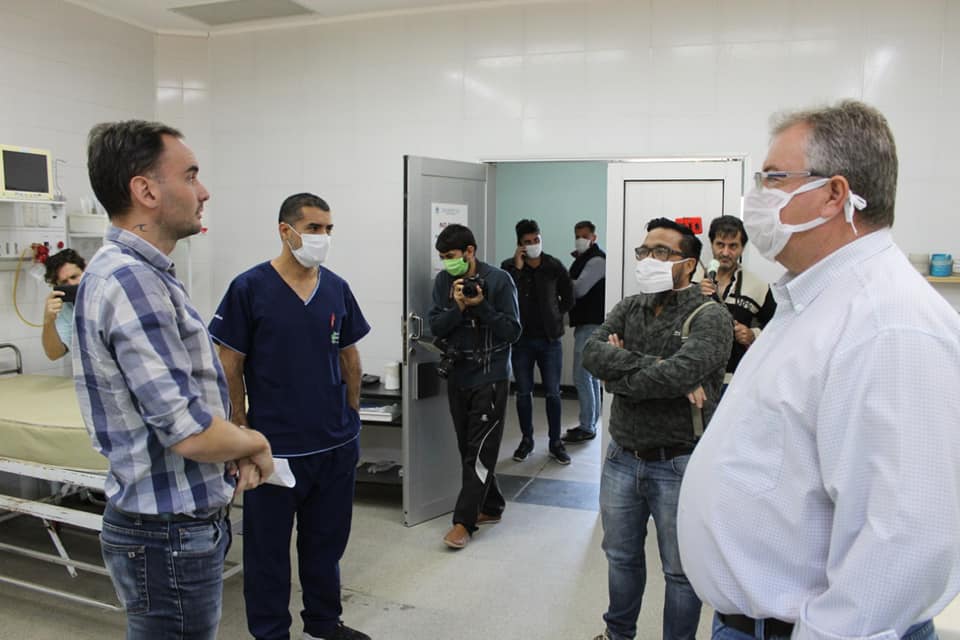 El Ministro de Infraestructura Juan Manuel Carraras junto al Intendente Pio Oscar Sander y el Director del Hospital Dr Feliz Ruiz, recorrieron el sector de remodelaciones y acondicionamientos del hospital del Bicentenario en el marco de la emergencia sanitaria por el COVID 19.-