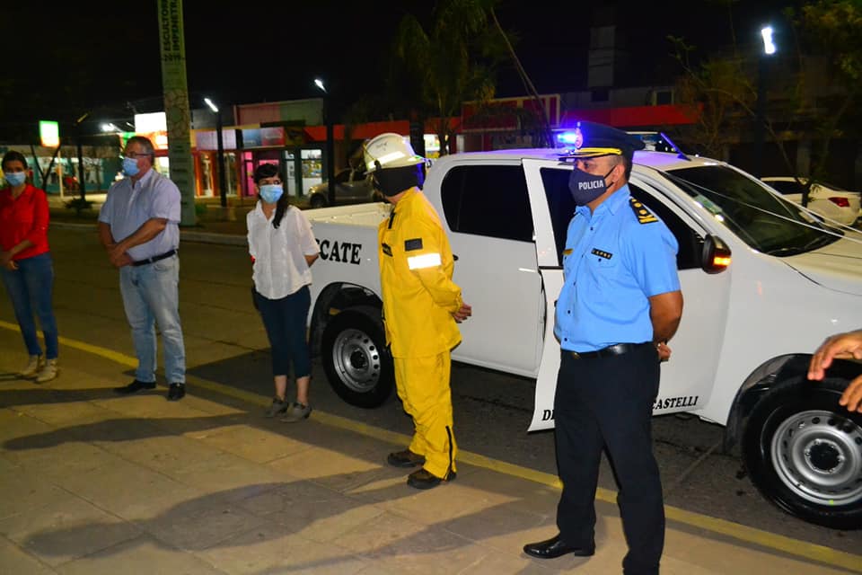 Del Acto de entrega participaron también el Secretario de Gobierno Ismael Pablo Barnes, la Presidenta del Concejo Soledad Rach, Comisario Principal Wilfredo González Dellamea Jefe de Bombero de Castelli, Director de Zona Interior Juan Domingo Penayo, Comisario Mayor Supervisión Zona 20 Interior Juan Carlos Sandoval.