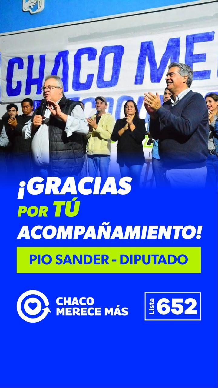 Pio Sander fue electo diputado por el 50,33 % de los votantes en el Departamento Güemes
